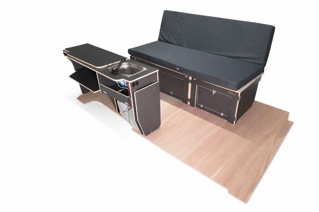 El Kit Camper VW Transporter convierte tu Volkswagen Transporter en una Camper completa sin obras: instalación sencilla, se puede anclar para dejar fijo y homologar, o bien con un sistema de montaje y desmontaje rápido y muebles modulares pensados para uso real.